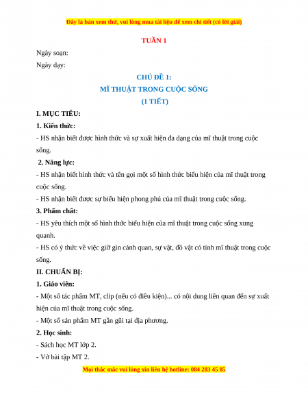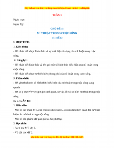 MĨ THUẬT TRONG CUỘC SỐNG (1 TIẾT) I. MỤC TIÊU: 1. Kiến thức: