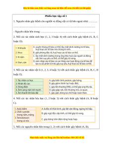 2. Nối các tác nhân sinh h c ọ (1, 2, 3 ho c ặ 4) v i ớ cách th c ứ gây b nh ệ (A, B, C ho c ặ D). 3. Nối các tác nhân v t ậ lí (1, 2, 3, 4 ho c ặ 5) v i ớ cách th c ứ gây b nh ệ (A, B, C, D ho c ặ E). 4. N i ố các tác nhân hóa h c ọ (1, 2 ho c ặ 3) v i ớ cách th c ứ gây b nh ệ (A, B ho c ặ C).