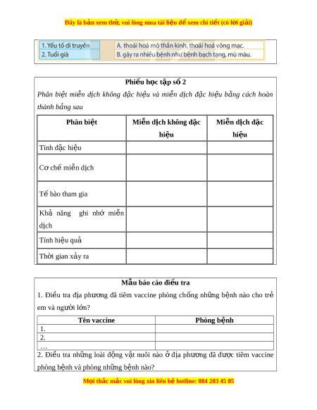 Đây là bản xem th , vu ử i lòng mua tài li u ệ đ xe ể m chi ti t (c ế ó l i ờ gi i ả ) Phi u h ế c t ọ p s ậ 2 ố Phân bi t ệ mi n ễ d ch ị không đ c ặ hi u ệ và mi n ễ d ch ị đ c ặ hi u ệ b ng ằ cách hoàn thành b ng ả sau Phân bi t ệ Mi n d ễ ch không đ ị c ặ Mi n d ễ ch đ ị c ặ hi u ệ hi u ệ Tính đ c ặ hi u ệ C ch ơ ế mi n d ễ ch ị T bào ế tham gia Khả năng ghi nhớ mi n ễ dịch Tính hi u qu ệ ả Th i ờ gian x y r ả a Mẫu báo cáo đi u t ề ra 1. Đi u ề tra đ a ị phư ng
