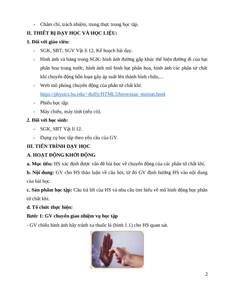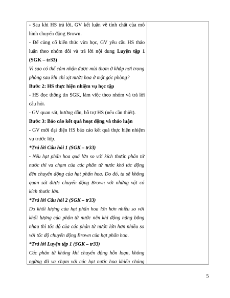 - Nêu được nội dung của mô hình khí lí tưởng. 3. Phẩm chất 1