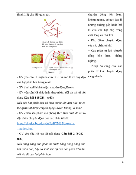 họa sự va chạm của các phân tử nước vào hạt phấn hoa - Chuyển động Brown là 3 (hình 1.3) cho HS quan sát.