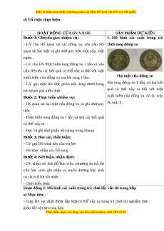 ồ xu thì mô hình xác su t ấ g m ồ hai khả năng ng ứ v i ớ m t ặ xuất hi n c ệ a đ ủ ồng xu,…) 2. Năng l c ự Năng l c ự chung: Góp ph n ầ t o ạ c ơ h i ộ đ ể HS phát tri n ể m t ộ s ố năng l c ự toán h c ọ nh : ư Năng l c ự tư duy và l p ậ lu n ậ toán h c; ọ năng l c ự sử d ng ụ công c , ụ phư ng t ơ i n h ệ c t ọ oán năng l c gi ự ao ti p t ế oán h c. ọ Năng l c ự riêng: - Li t ệ kê đư c ợ các k t ế quả có thể x y ả ra trong các trò ch i ơ , thí nghi m ệ đ n ơ gi n ả - Ki m ể tra đư c ợ m t ộ s ki ự n x ệ y ả ra hay không x y r ả a 3. Ph m ẩ chất - Rèn luy n ệ tính c n ẩ th n,