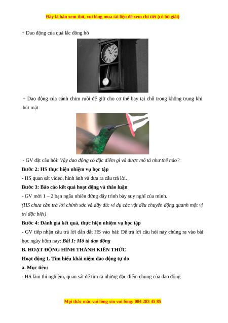 - GV đặt câu hỏi: Vậy dao động có đặc điểm gì và được mô tả như thế nào?