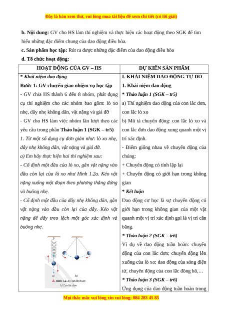 Hoạt động 1. Tìm hiểu khái niệm dao động tự do a. Mục tiêu: