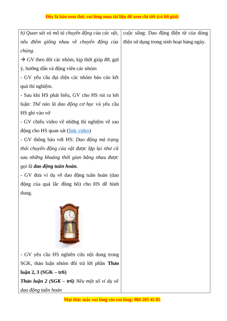 - GV đưa ví dụ về dao động tuần hoàn (dao