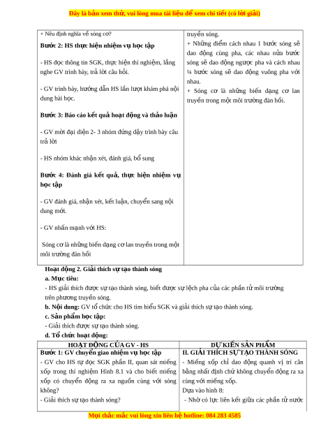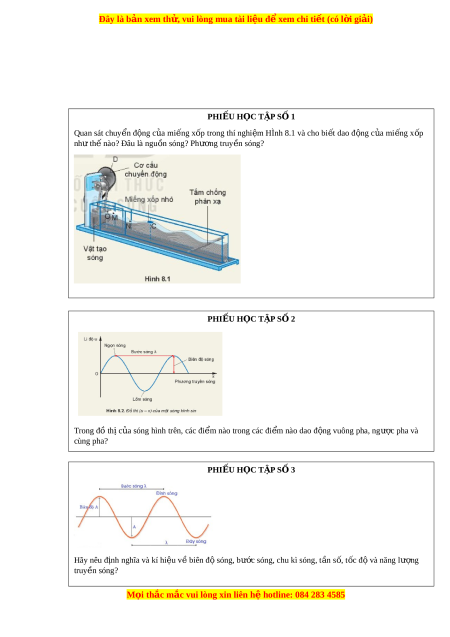 Đây là bản xem th , vu ử i lòng mua tài li u ệ đ xe ể m chi ti t ế (có l i ờ gi i ả ) PHIẾU HỌC T P Ậ S Ố 1 Quan sát chuy n ể đ ng ộ c a ủ mi ng ế x p ố trong thí nghi m ệ HÌnh 8.1 và cho bi t ế dao đ ng ộ c a ủ mi ng ế x p ố nh ư th ế nào? Đâu là ngu n ồ sóng? Ph ng ươ truy n ề sóng? PHIẾU HỌC T P Ậ S Ố 2 Trong đồ th ị c a