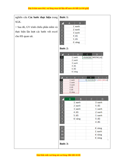 - HS biết sử dụng các hàm RANDBETWEEN, VLOOKUP, COUNTIF trong excel. b) Nội dung:
