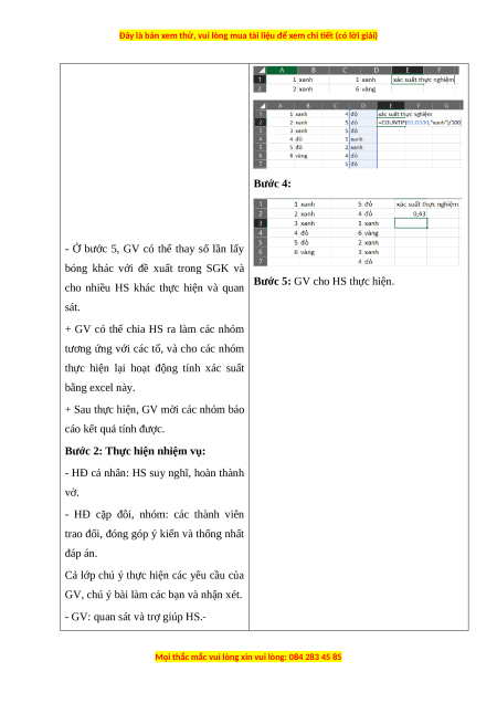 Giáo án Mô tả thí nghiệm ngẫu nhiên với phần mềm Excel Toán 8 Kết nối tri thức