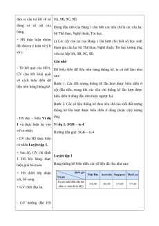 Bảng thống kê biểu diễn các số liệu đã cho như sau: + HS dưới lớp nhận xét, bổ sung + GV chốt đáp án. - GV hướng dẫn HS