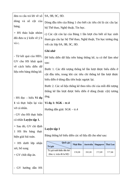 Giáo án Mô tả và biểu diễn dữ liệu trên các bảng, biểu đồ Toán 9 Cánh diều