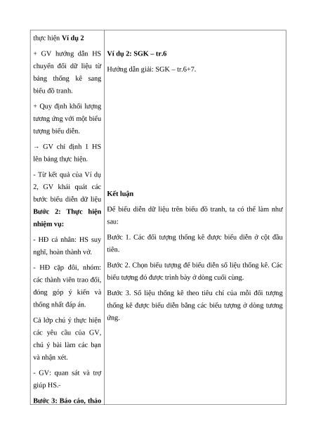- Lí giải và thực hiện được cách chuyển dữ liệu từ bảng thống kê sang biểu đồ tranh. b) Nội dung: