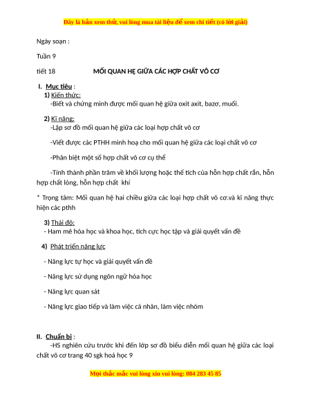 Đây là bản xem th , vu ử i lòng mua tài li u ệ đ xe ể m chi ti t (c ế ó l i ờ gi i ả ) Ngày soạn : Tuần 9 tiết 18