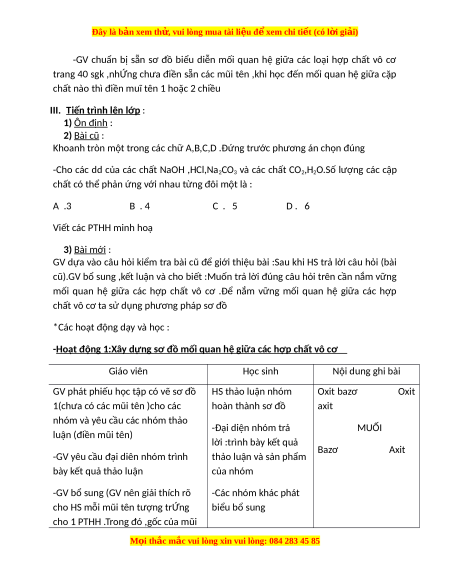 -Hoạt động 1:Xây dựng sơ đồ mối quan hệ giữa các hợp chất vô cơ Giáo viên Học sinh Nội dung ghi bài