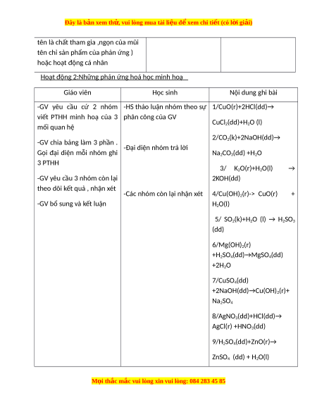 -GV yêu cầu cứ 2 nhóm -HS thảo luận nhóm theo sự 1/CuO(r)+2HCl(dd)→