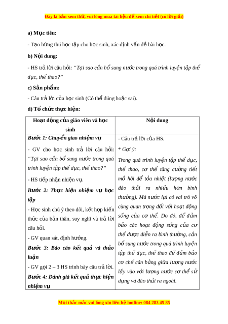 Đây là bản xem th , vu ử i lòng mua tài li u ệ đ xe ể m chi ti t ế (có l i ờ gi i ả ) a) M c t ụ iêu: - T o h ạ ng t ứ hú h c t ọ p ậ cho h c s ọ inh, xác đ nh v ị n đ ấ bài ề h c. ọ b) N i ộ dung: - HS trả l i ờ câu h i ỏ : “T i ạ sao c n b ầ s ổ ung nư c