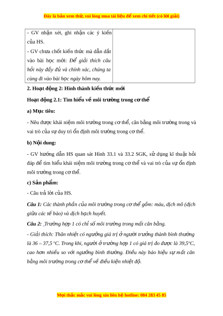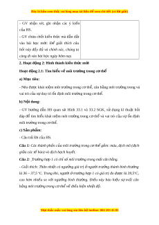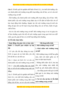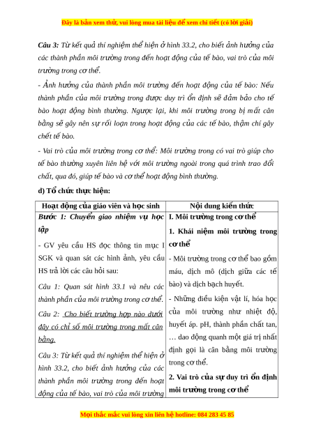 ẫ HS quan sát Hình 33.1 và 33.2 SGK, sử d ng ụ kĩ thu t ậ h i ỏ đáp để tìm hi u ể khái ni m ệ môi trư ng ờ trong c ơ th ể và vai trò c a ủ s ự n ổ đ nh ị môi trư ng t ờ rong c t ơ h . ể c) S n ph ả m ẩ : - Câu tr l ả i ờ c a H ủ S.