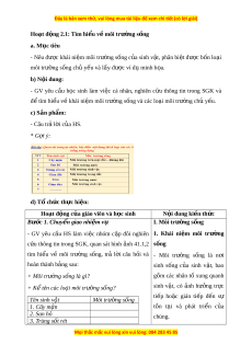 d) Tổ chức thực hi n ệ : Hoạt đ ng c ộ a g ủ iáo viên và h c ọ sinh N i ộ dung ki n t ế h c ứ Bư c ớ 1. Chuy n gi ể ao nhi m ệ vụ I. Môi trư ng s ờ ng ố - GV yêu c u ầ HS làm vi c ệ nhóm c p