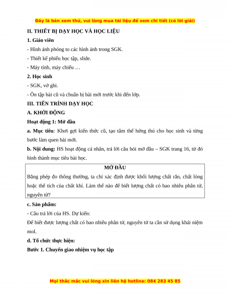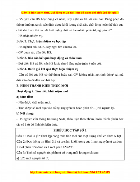 hoặc thể tích của chất khí. Làm thế nào để biết lượng chất có bao nhiêu phân tử, nguyên tử? c. Sản phẩm: