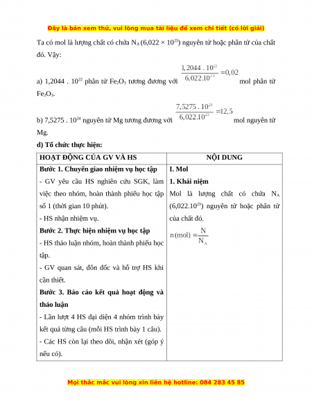 - Tính được số mol dựa vào số hạt (nguyên tử hoặc phân tử …) và ngược lại. b) Nội dung: