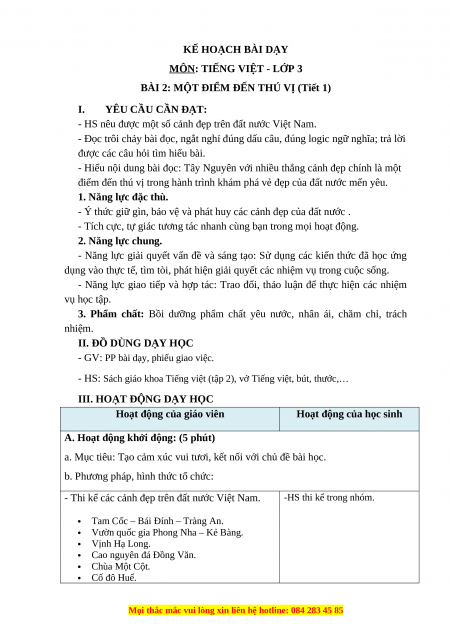 điểm đến thú vị trong hành trình khám phá vẻ đẹp của đất nước mến yêu. 1. Năng lực đặc thù.