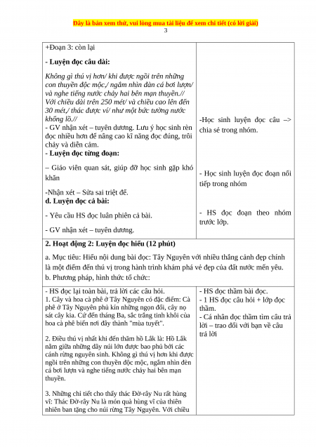 - Hiểu nội dung bài đọc: Tây Nguyên với nhiều thắng cảnh đẹp chính là một