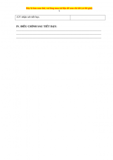 IV. ĐIỀU CHỈNH SAU TIẾT DẠY:
