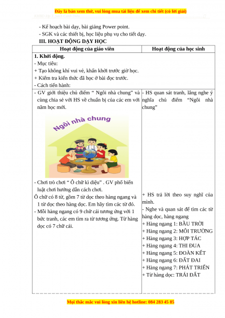 cùng chia sẻ với HS về chuẩn bị của các em với nghĩa chủ điểm “Ngôi nhà năm học mới. chung”