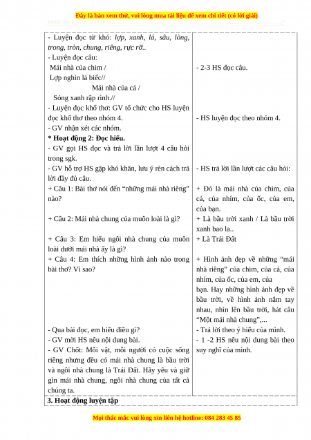 * Hoạt động 1: Đọc thành tiếng.