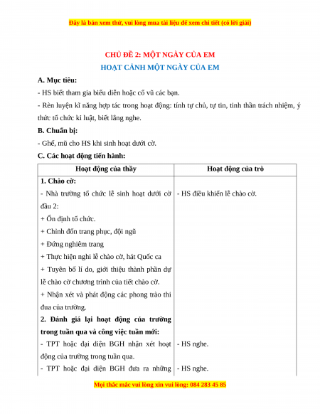 CHỦ ĐỀ 2: MỘT NGÀY CỦA EM
