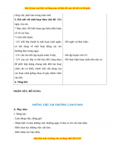 - Nhận biết và làm những việc thường ngày ở nhà có ích cho bản thân.