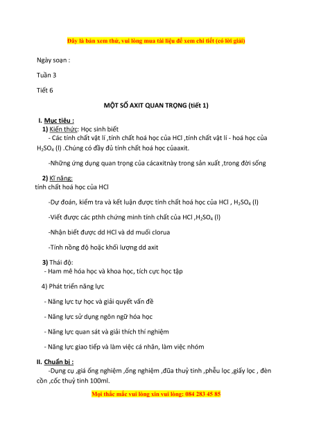 Đây là bản xem thử, vui lòng mua tài liệu để xem chi tiết (có lời giải) Ngày soạn : Tuần 3 Tiết 6
