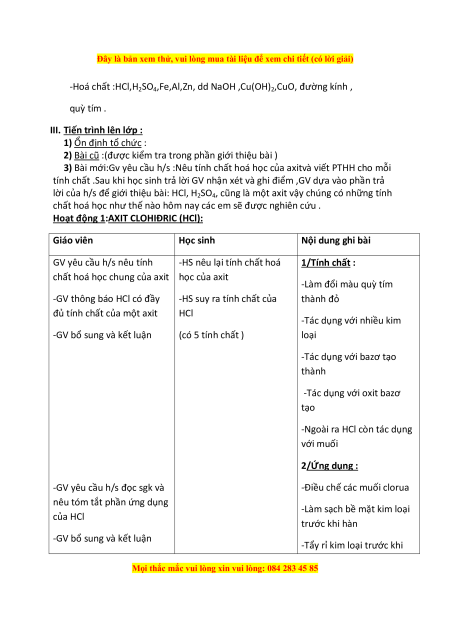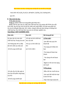 Hoạt động 1:AXIT CLOHIĐRIC (HCl): Giáo viên Học sinh Nội dung ghi bài GV yêu cầu h/s nêu tính