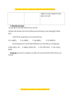-Viết được các pthh chứng minh tính chất của HCl ,H2SO4 (l)