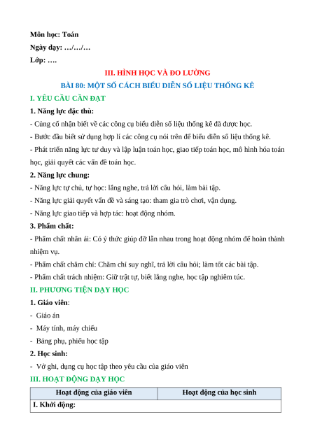 Giáo án Một số cách biểu diễn số liệu thống kê Toán lớp 5 Cánh diều