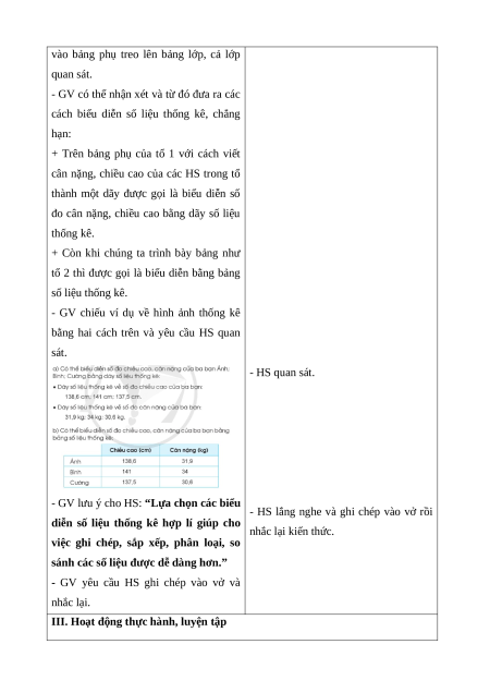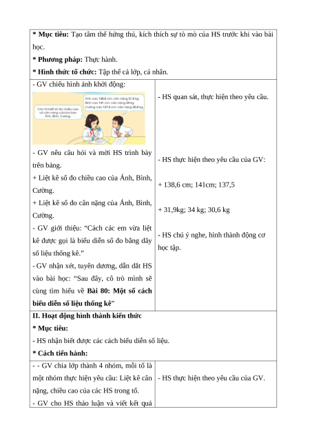 - HS nhận biết được các cách biểu diễn số liệu. * Cách tiến hành: