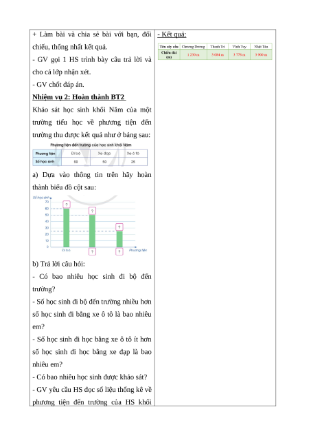 + Dựa vào đó để hoàn thành bảng thống kê nêu trong bàn.