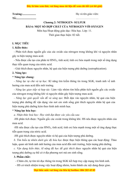 Đây là bản xem thử, vui lòng mua tài liệu để xem chi tiết (có lời giải) Trường:................... Họ và tên giáo viên:
