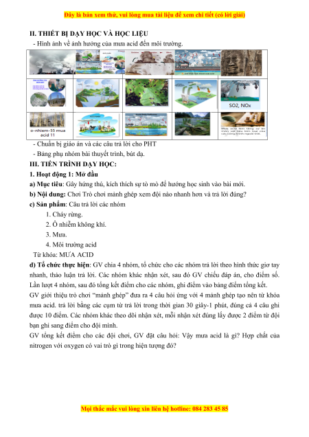luận, quan sát hình ảnh ảnh hưởng của mưa acid đến môi trường, hiện tượng phú dưỡng.