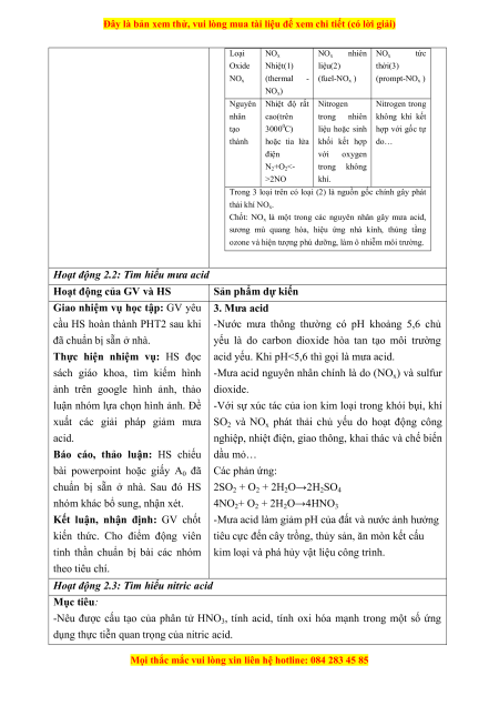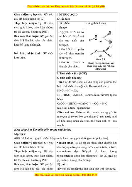 Hoạt động 2.3: Tìm hiểu nitric acid Mục tiêu: