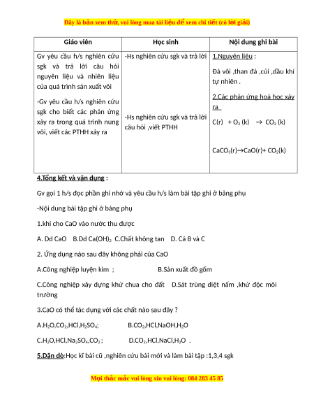 -Gv thông báo CaO có tính hút ẩm M i ọ thắc m c