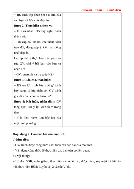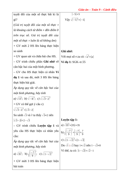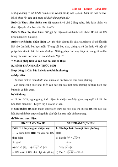 Giáo án Một số phép tính về căn bậc hai của số thực Toán 9 Cánh diều