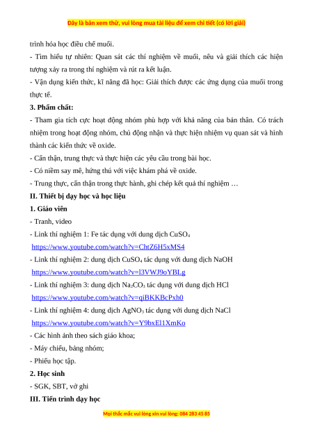 - Nhận thức khoa học tự nhiên: Phát biểu được khái niệm muối và viết được phương