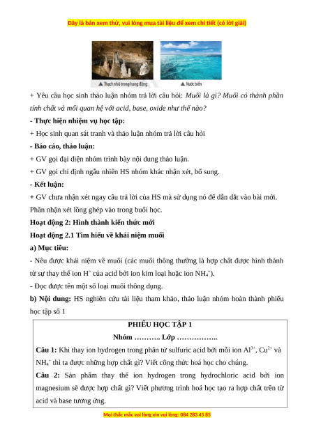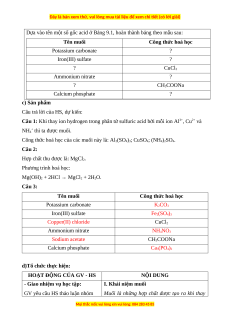 Hoạt động 2.1 Tìm hiểu về khái niệm muối a) Mục tiêu:
