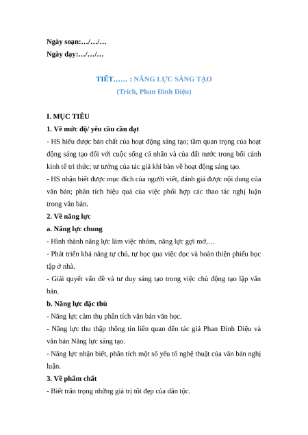 TIẾT…… : NĂNG LỰC SÁNG TẠO
