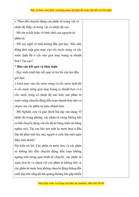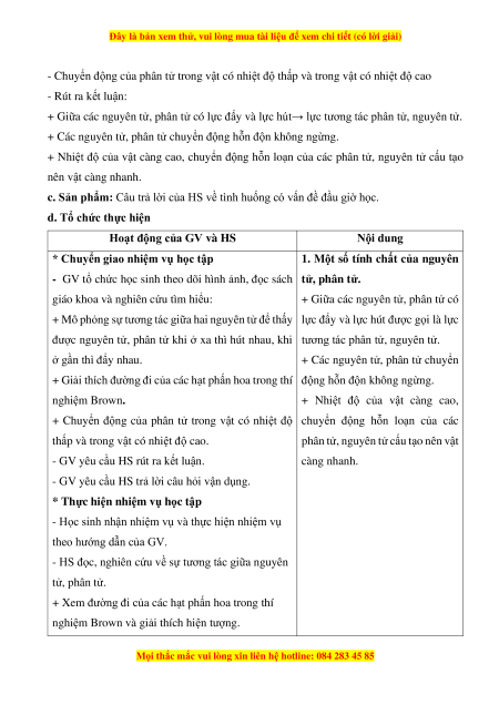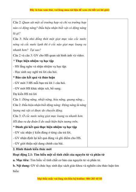 Tiết 1: Một số tính chất của nguyên tử, phân tử và khái niệm năng lượng nhiệt (Hoạt động: 1, 2.1, 2.2)