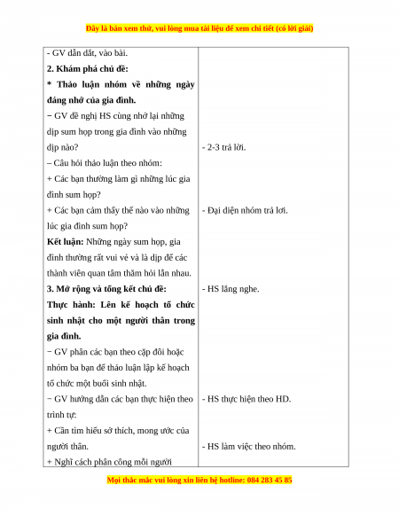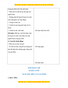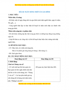 - HS nhớ được những dịp đặc biệt trong gia đình và những hoạt động trong những ngày đó.