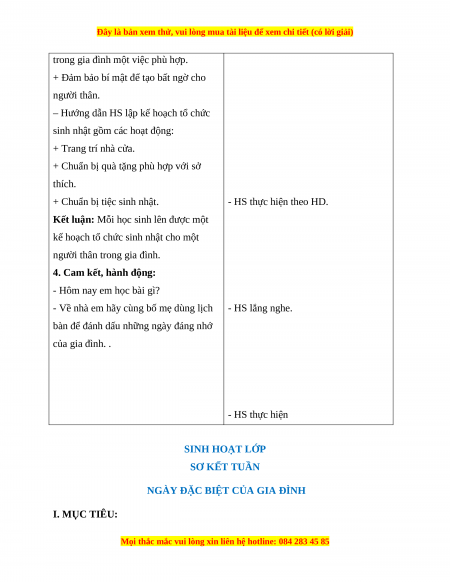 NGÀY ĐẶC BIỆT CỦA GIA ĐÌNH I. MỤC TIÊU: