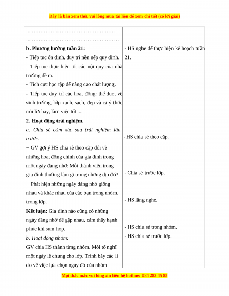 b. Phương hướng tuần 21: