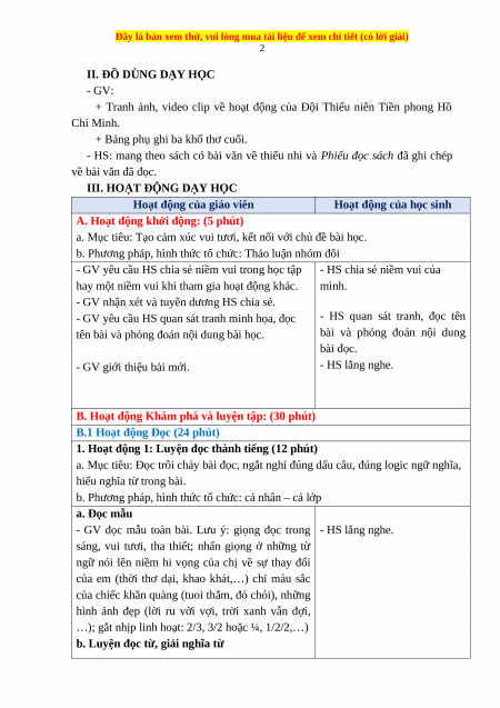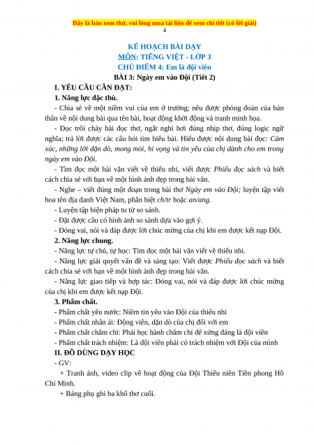 Giáo án Ngày em vào Đội Tiếng việt 3 Chân trời sáng tạo