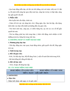 Đây là bản xem th , vu ử i lòng mua tài li u ệ đ xe ể m chi ti t (c ế ó l i ờ gi i ả ) - Qua ho t ạ đ ng ộ di n ễ đ t ạ , trả l i ờ câu h i ỏ (b ng ằ cách nói ho c ặ vi t ế ) mà GV đ t ặ ra, HS phát tri n ể năng l c ự giao ti p ế toán h c, ọ năng l c ự t ư duy và l p ậ lu n, ậ năng l c ự gi i ả quy t ế v n đ ấ . ề 3. Phẩm ch t ấ - Rèn luy n t ệ ính c n t ầ h n, chí ậ nh xác. - Chăm chỉ tích c c ự xây d ng ự bài, chú ý l ng ắ nghe, đ c, ọ làm bài t p, ậ v n ậ d ng ụ ki n t ế h c ứ vào th c t ự i n d ễ ư i ớ s h ự ư ng d ớ n c ẫ a ủ giáo viên. - Yêu thích môn h c, ọ sáng t o, ạ có ni m ề h ng
